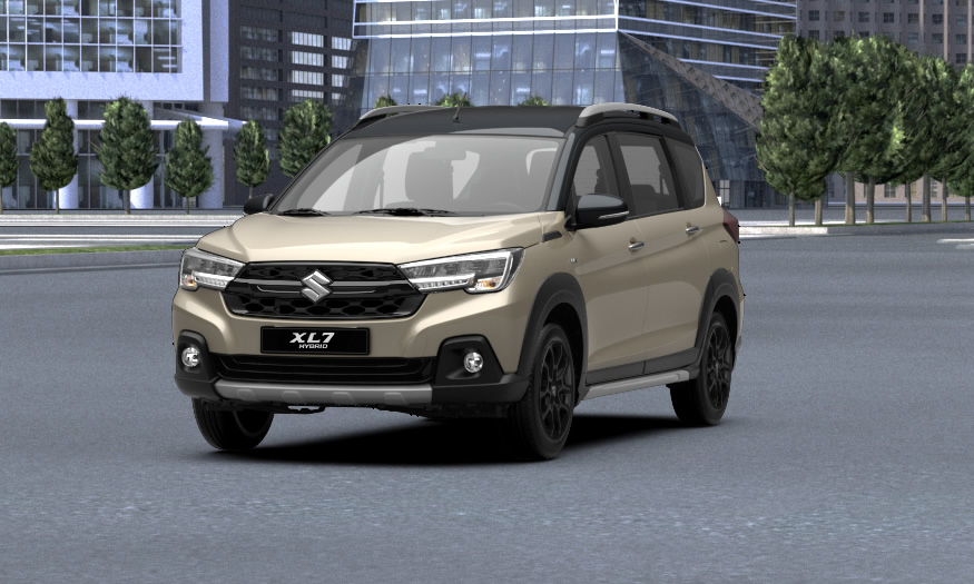 XL7 Hybrid nổi bật giữa đám đông. Diện mạo của một chiếc SUV đậm chất mạnh mẽ với lưới tản nhiệt màu đen độc đáo và đèn pha LED, những đường viền khắp thân xe làm tôn thêm sự hứng khởi căng tràn.
